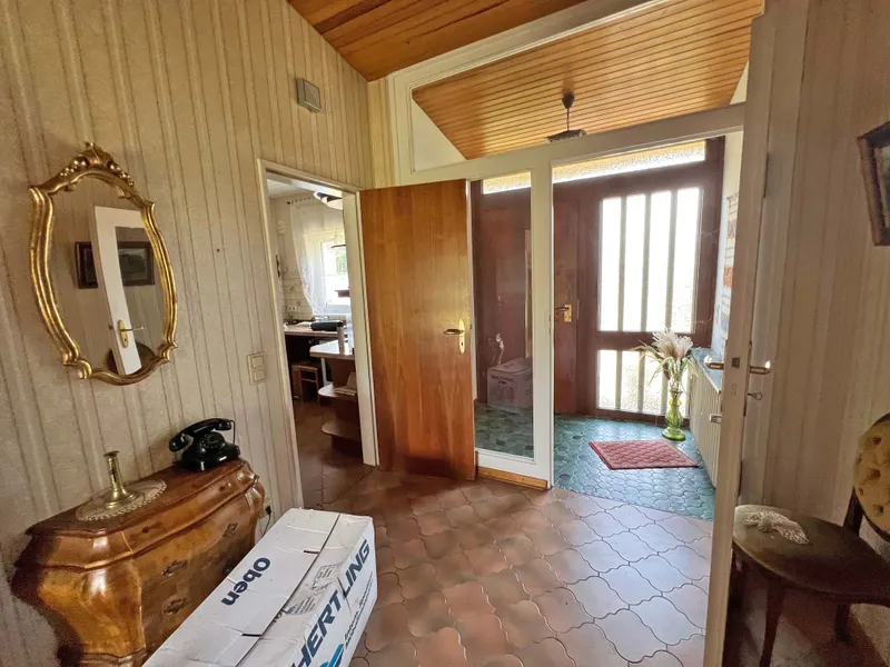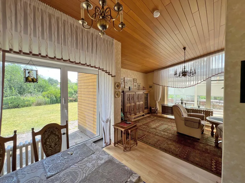 Hier angeboten wird ein etwa 1965 errichtetes Einfamilienhaus mit einer Wohnfläche von rund 105 m². Das massive Gebäude ist eingeschossig, teilunterkellert und wurde im Jahr 1989 um einen beheizbaren Wintergarten [...]