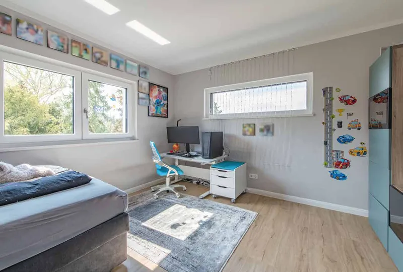 Hier angeboten wird ein rechteckiges Grundstück mit einem villenartigen Einfamilienhaus (Baujahr 2017) auf dem vorderen Grundstücksteil und einem (Gäste–) Haus im hinteren Grundstücksbereich. Das Haupthaus hat eine Nettogrundfläche von 241,73 m². [...]